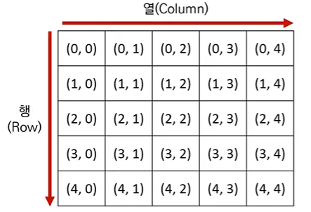 1. 일반적으로 알고리즘 문제에서의 2차원 공간은 행렬(Matrix)의 의미로 사용된다.