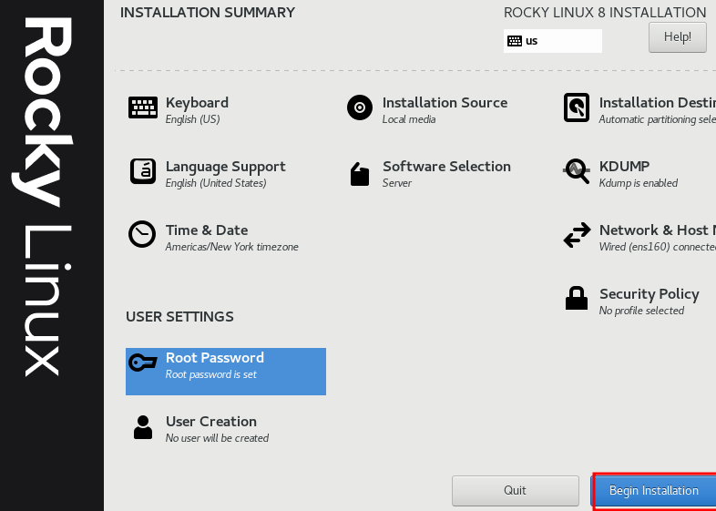 그리고 Root Passwrod & User Creation 설정 후 Begin Installation 선택시 VM 생성 완료